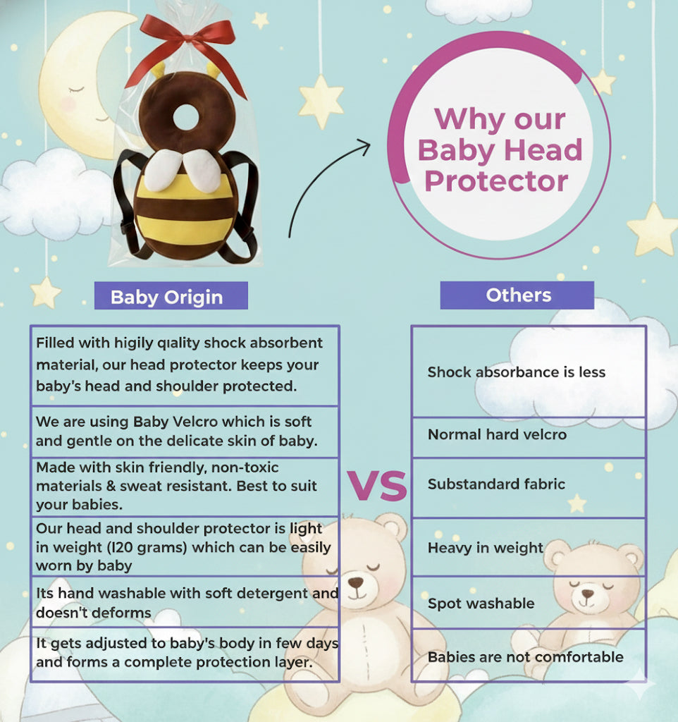 Support your baby’s early development with our Premium Baby Head Protection Pillow, a lightweight safety cushion designed to reduce the risk of injury during crawling, standing, and first steps. With a comfortable fit and carefully engineered padding, it provides reliable protection while allowing your baby to move freely and confidently.